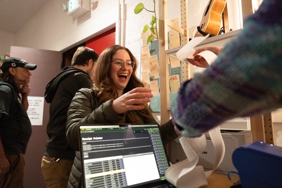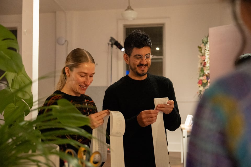 And wasn’t it lovely that some of the very earliest crew was here for it? That we got to see each other’s faces change, upon seeing where the time had gone? That we laughed about differences in Norton and Justin’s data? How so many of us waited for Lizzie to show up? How you played ping pong with yawns? That you wore receipts like scarves?