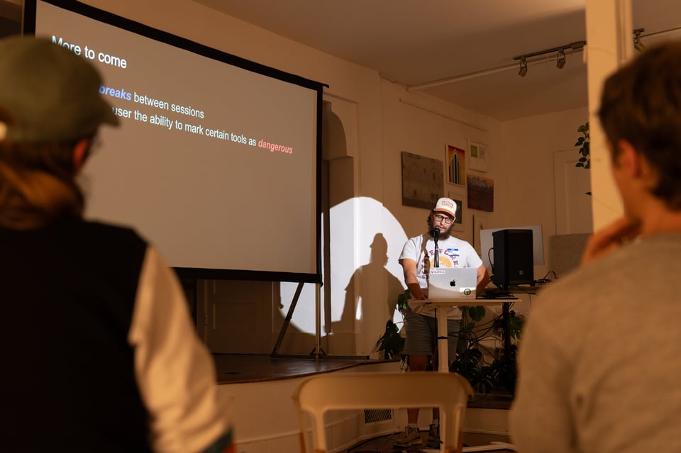 Twelve people giving 7-minute presentations about whatever they’re currently into. At past parties, people have presented about pasta, Bad Bunny, GLP-1s, and animal conservation. It’s a wide mix.