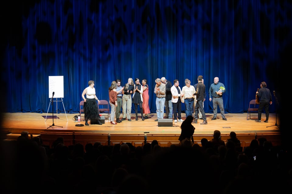 And do you remember the night of The Moth GrandSLAM? How you all got yelled at for trying to rush the theater? How we made it in with enough seats for all of us? How the violinist set a tone? And we laughed and held our breaths and were entertained? That Dan’s slip got read? That we took another big group photo? Lost friends to indecision? And eventually ate honey cheese pizza and a King Combo and debriefed each story, one by one?