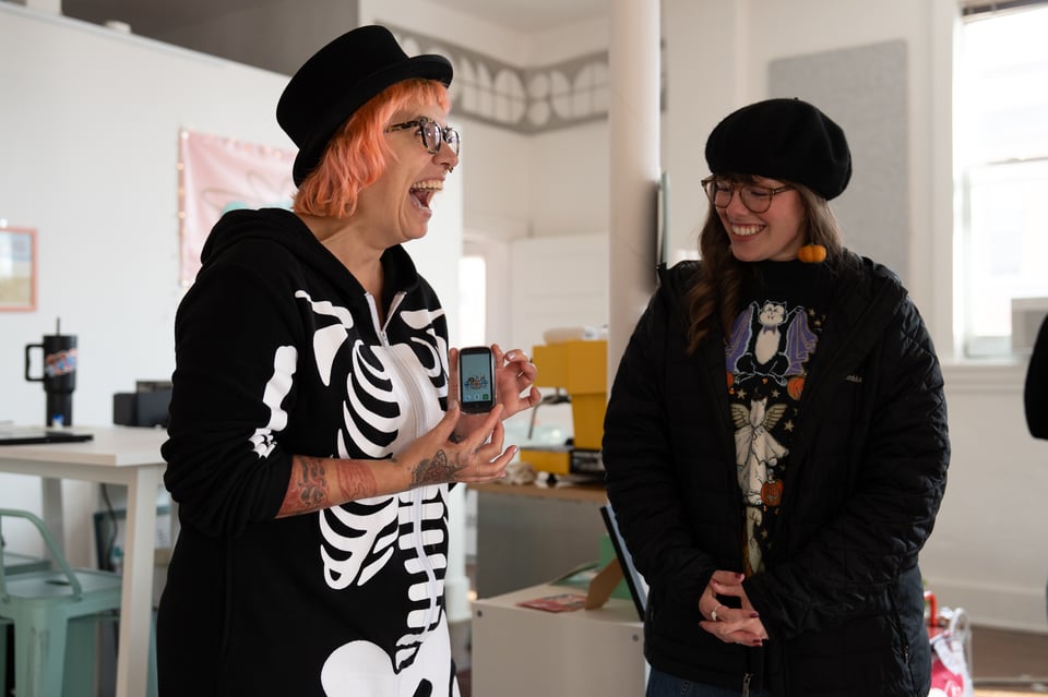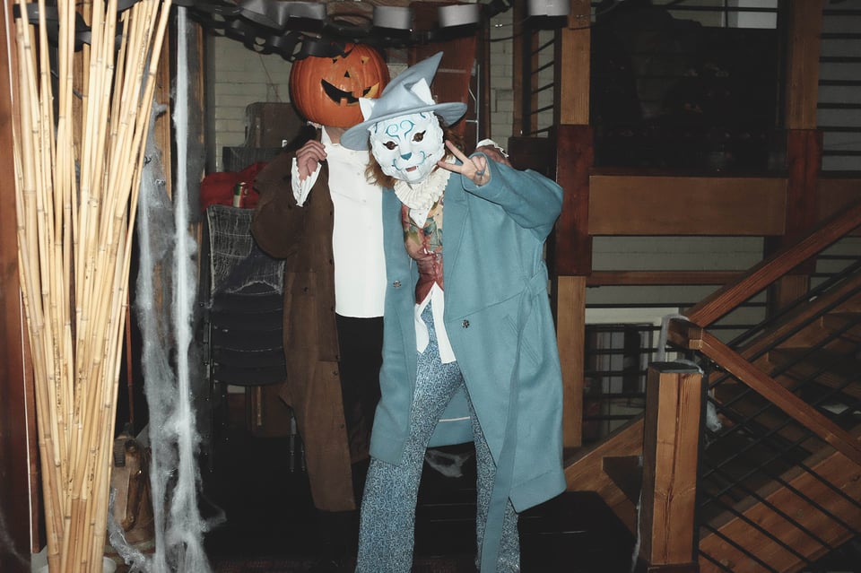 Do you remember Halloween that year? How it began with a Creative Mornings that bothered us for different reasons? That there was company for a few minutes in a coffee shop nearby? That at The Company there was a big and rotating group of us? How we fawned at Beth’s adorable new phone, that she learned about from José? How Madeleine showed up as that one specific chocolate milk cow, that we watched the Apparently Kid video, that we saw the resuming of Dan and Michelle’s silly hugs? That we recorded a phone-call attempt with an audience?