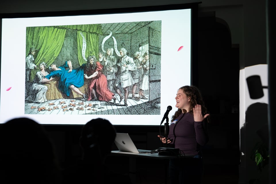 At PowerPoint Party: Case taught us about the criminalization of ornament, Lucy celebrated divorce, José ran us through some numbers for habit formation, Elijah finally got around to telling us about forks, Daniel nos ayudó apreciar la pelicula Coco, Beth reflected on her recent travels to Japan, Micah was pretty glued to his slides, Kayla told us a story about Type III fun, Lauren educated us on eponyms, and Ivan sped through a history of the east half of lots 16–19 in block 11 of the Union Addition of Denver.