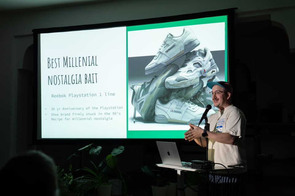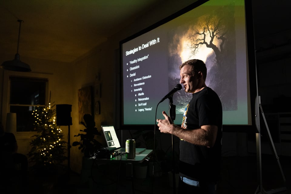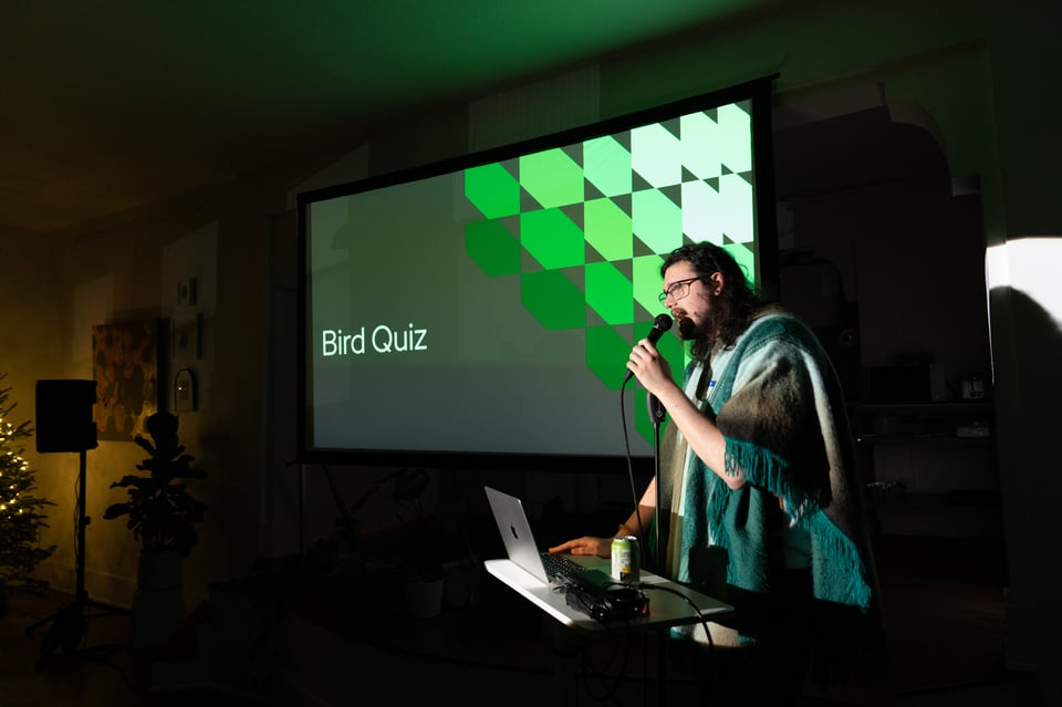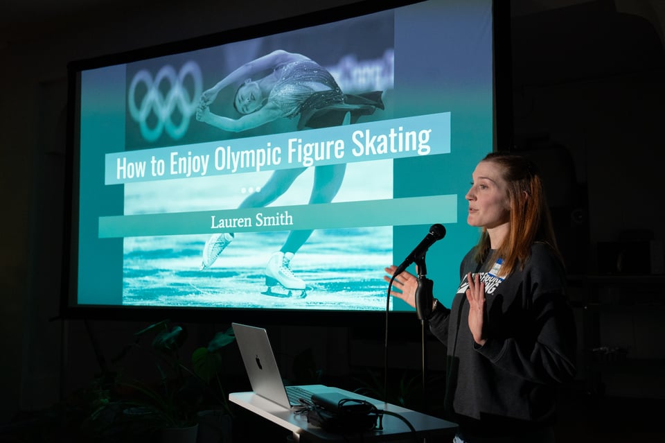 At PowerPoint Party No. 34, Simon quizzed us about birds, Summer explored a method for shape-based dressing, Christof had us looking at his shoes, Kayla reviewed her year of celebrations, Gus and Kaila taught us the lyrics to APT., Ivan read holiday vignettes, Lauren S. explained how to judge ice dance, Madeleine told us about ice resurfacing, Trevr made us memento mori, Dan pleaded with us to appropriately appreciate Mariah Carey, and Beth taught us how to make a damn fine cup of coffee.