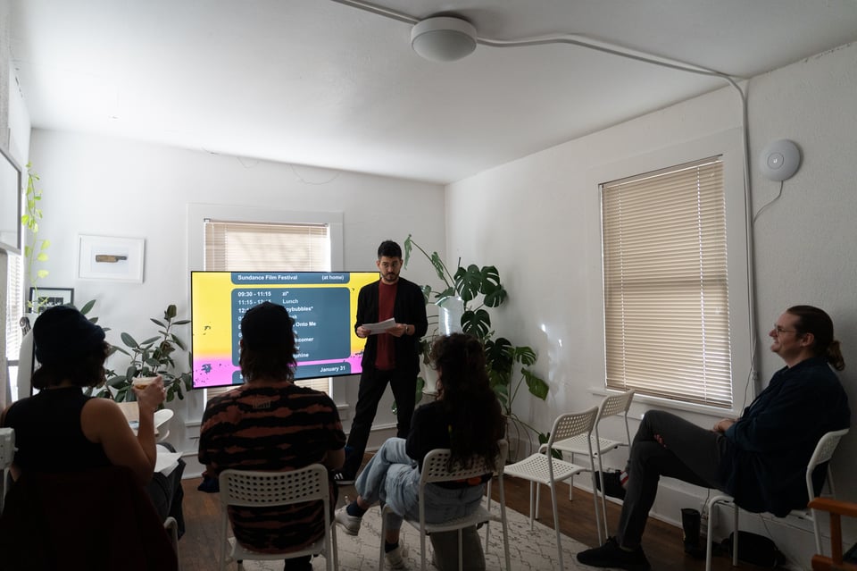 Or the first day of the fifth and (what we learned to be) final Sundance at Home? The temporary return of Drew J., just for that? The thoughtful remarks, and programming, and snacks? The full day of movies that confused us and warmed our hearts and made us laugh and had us feeling heavy and grateful for lives that would make boring movies?