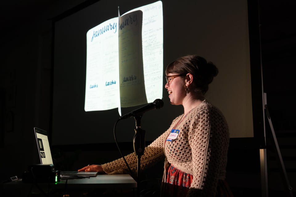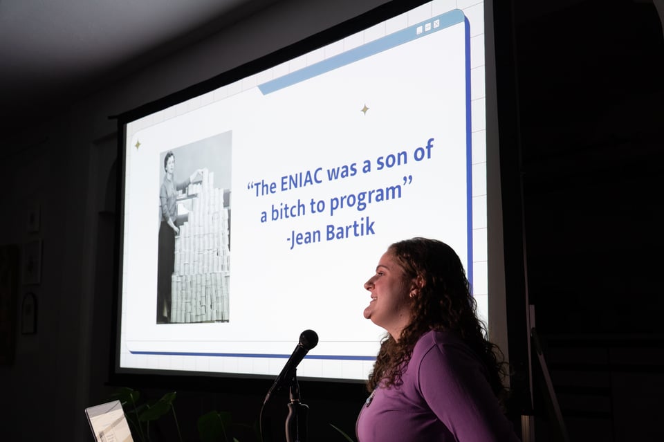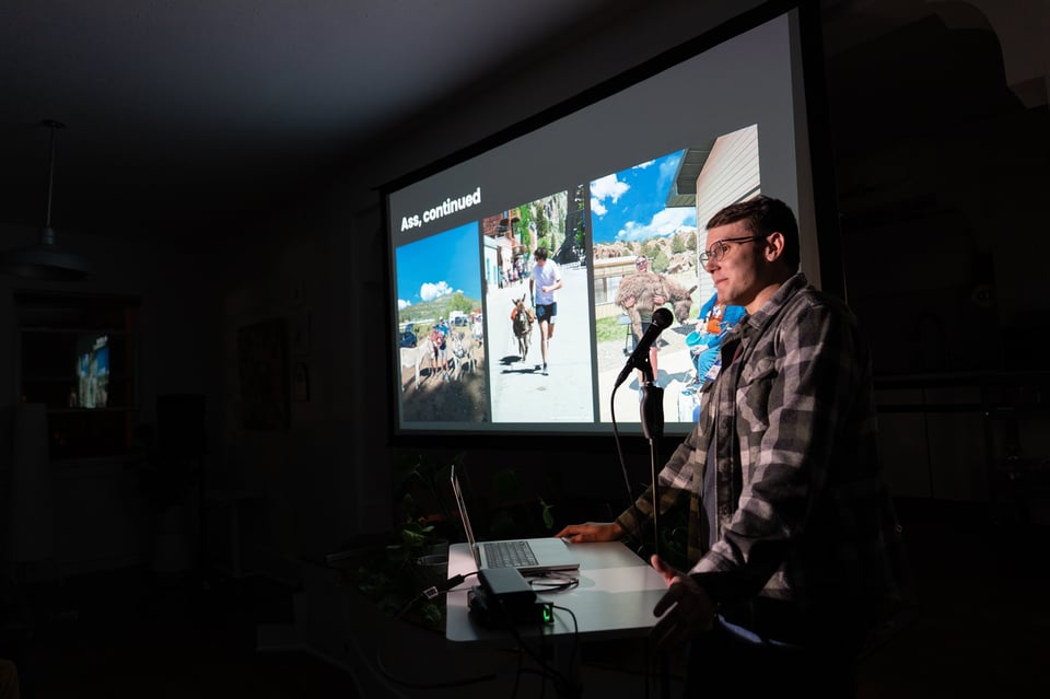 At PowerPoint Party: Jake raced through an introduction to burro racing, Lizzie opened up about her journaling system, Drew J. gave us an overview of skydiving, Allyson aroused our interest in Medicare and Medicaid, Tim outlined the history of the shape of Colorado, Michelle helped us appreciate very fine details, Dan shared what it’s like inside of his brain inside of a bathroom, Sophie reported on her 2025 reading, Elijah held our attention with a presentation on fasteners, Ashley imparted some wisdom she’s received over her life, Ryan encouraged us to have a healthy relationship with attachment styles, and Lauren T. shared the story of the woman who shared the stories of the women who programmed the ENIAC.