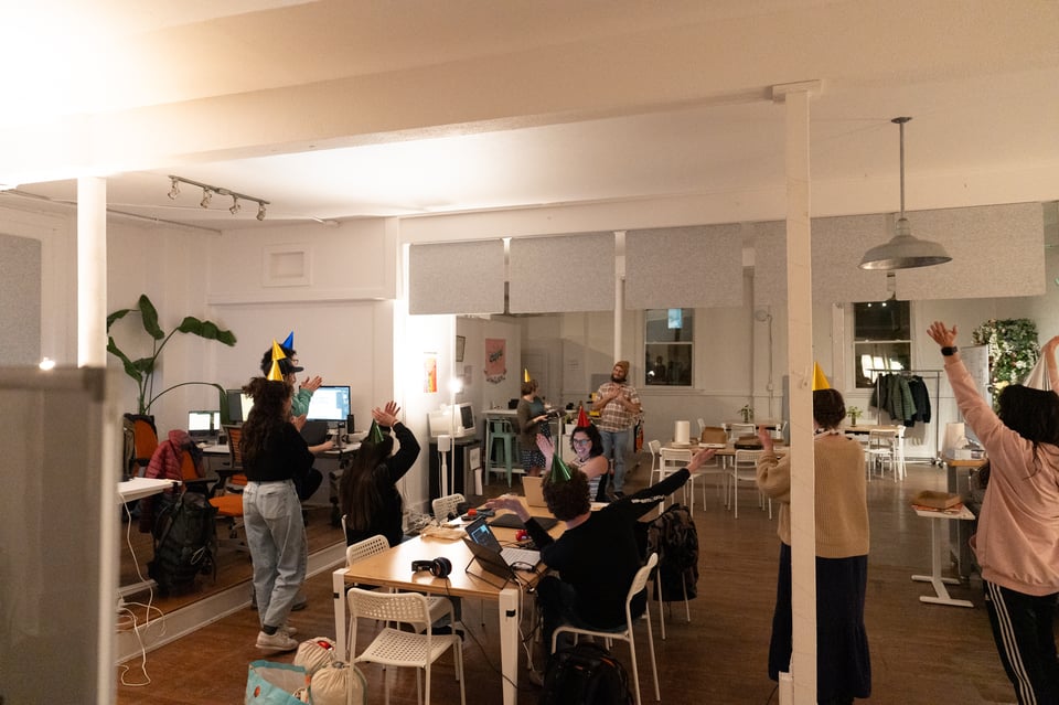 Do you remember the Worknight that happened to fall on Alex’s birthday? How it happened to have such a big crowd? How there happened to be pizza? And how Jessica P. happened to be in the storage room with cake? How it was her very first Worknight? How when you came out everyone was in hats? How one of the breaks turned into a dance party after Mark’s skills became activated? How the break turned into an extended club session?
