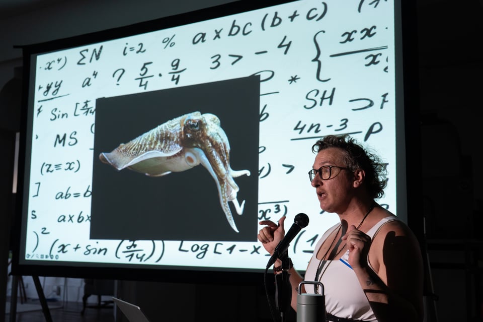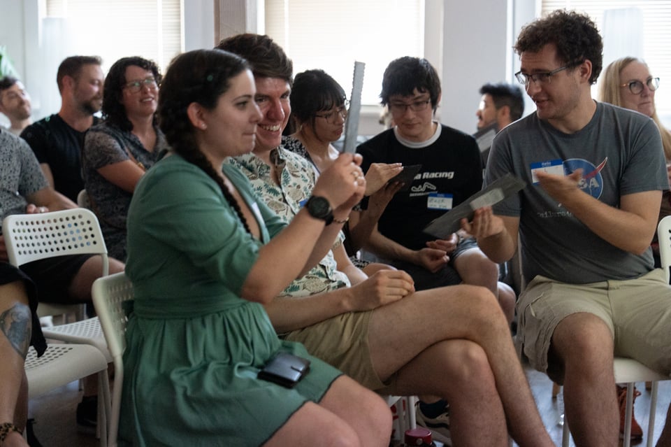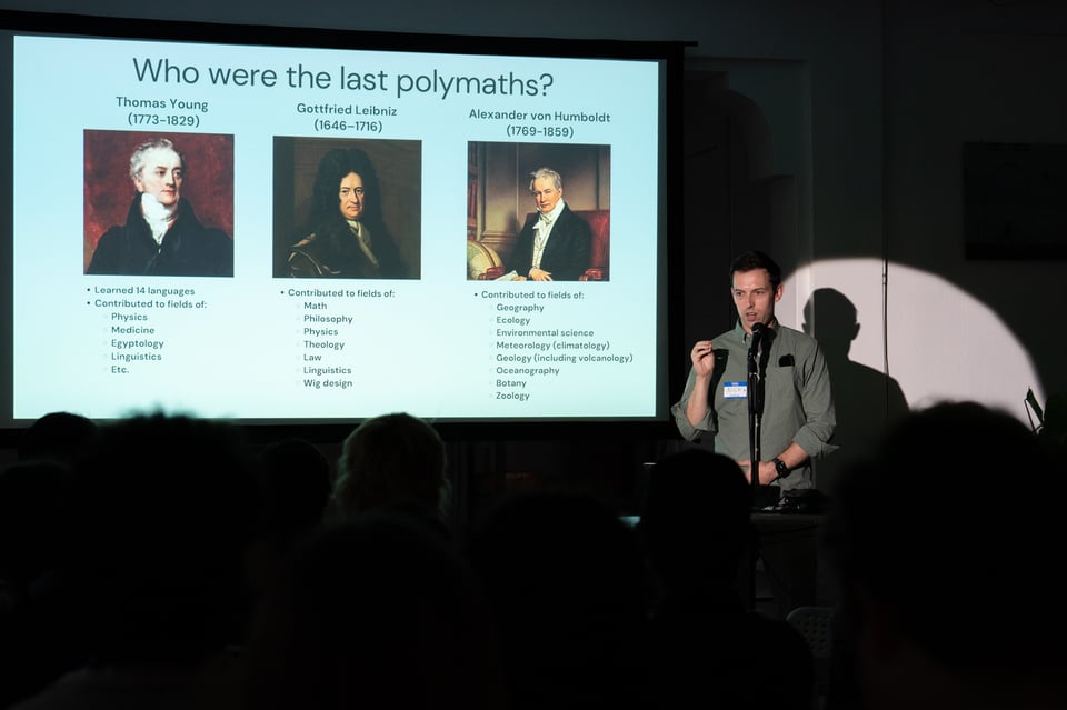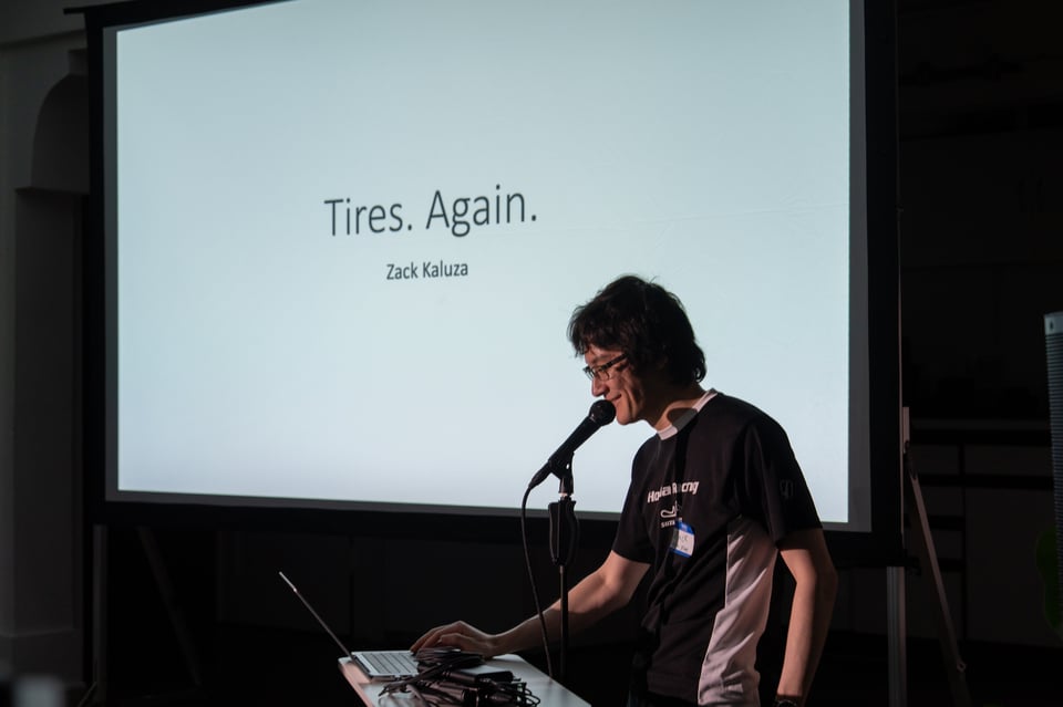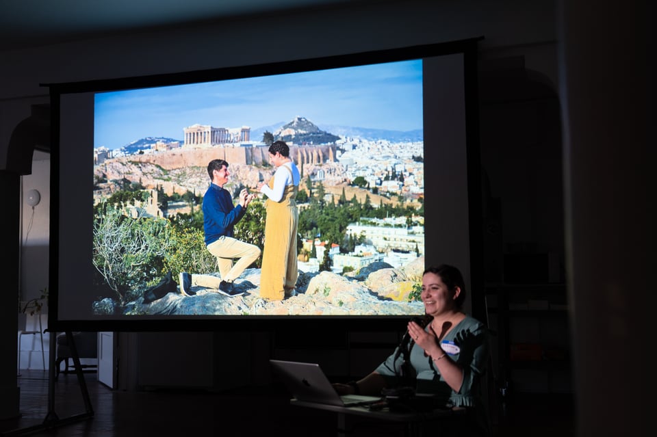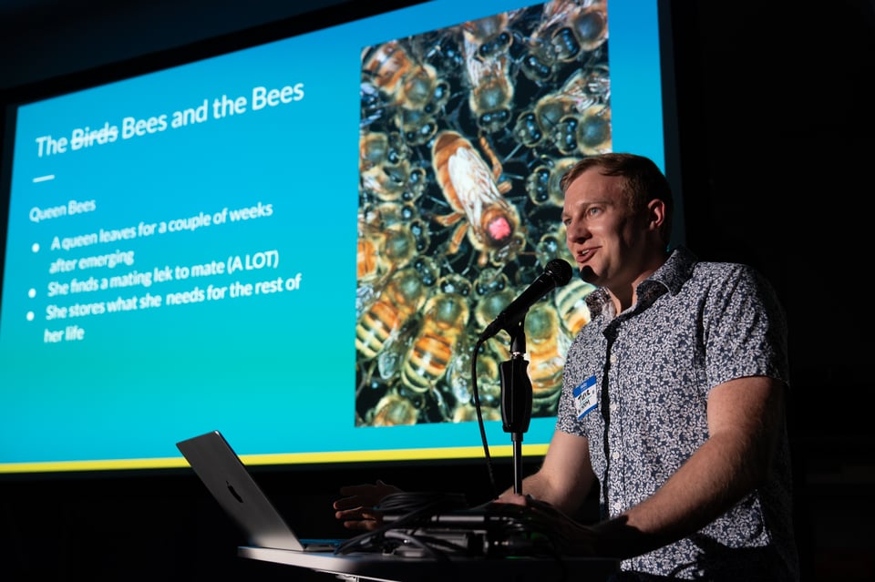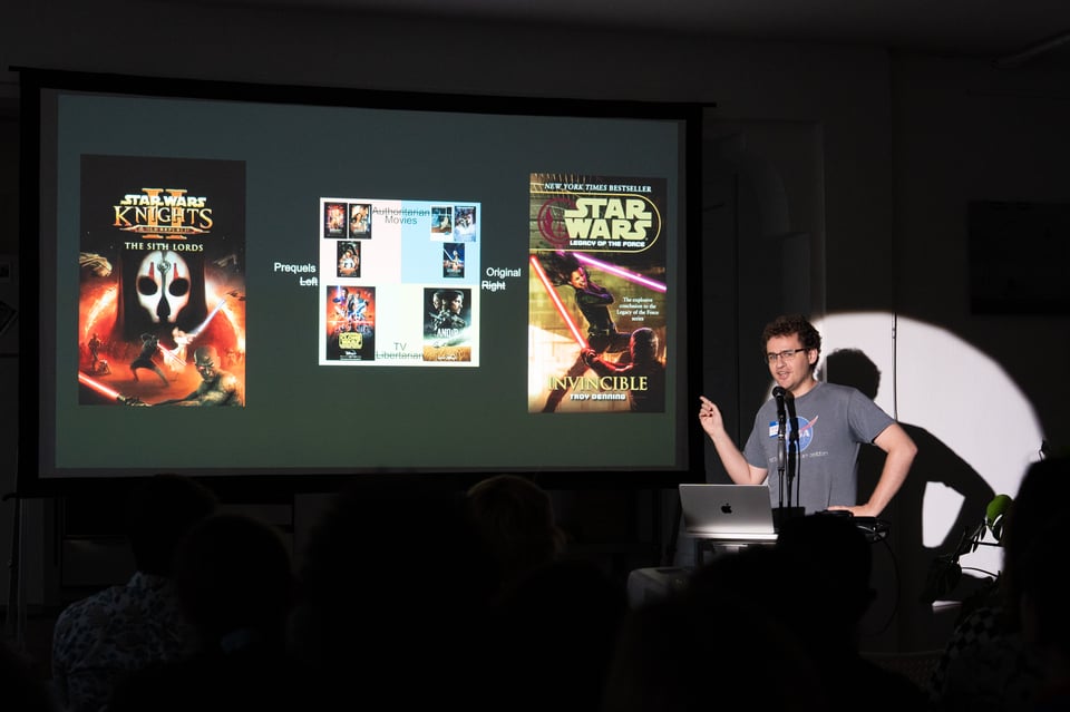 At PowerPoint Party No. 27: Simon helped us appreciate roofing materials, Sabrina showed us photos from her Greece trip (and casually dropped that she got engaged), Adam gave us a difficult scenario, Nick told us about polymaths, Taryn introduced us to the many wonders of cuttlefish, Jacob taught us about politics or Star Wars or voting or ranking or rating, Allyson completed her trilogy of fresco talks, Ronak impressed upon us the magnitude and speed of the space program, Trevr made puns about bees, Mary Ann T. asked a very good question, Greg described one man’s descent into madness, and Zack presented about tire pressure, and hey, don’t tires, from a certain profile, look a little bit like a ring?