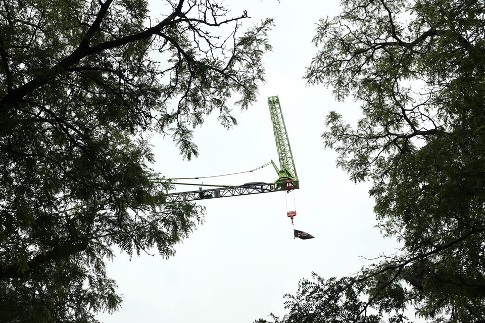 How we stood in the park and watched the crane construct itself and unfurl? The joy of seeing the pirate flag, noticing the counterweights, and watching it wobble? That Lizzie had to leave before it ended, and we hugged goodbye? That we clapped when it finished, and the workers laughed at our clapping?