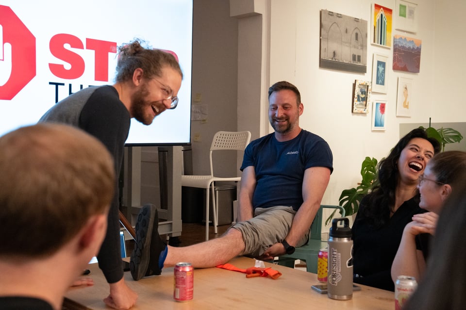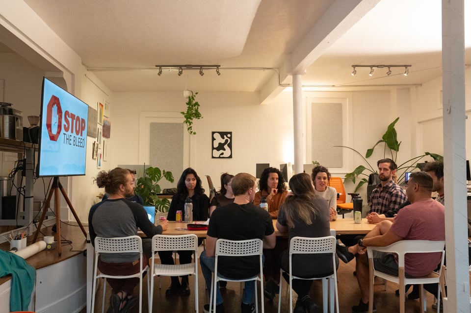 Thanks to Survival Scouts, we are now in possession of a Stop the Bleed Kit, along with a sizable group of people who know how to use it! We would like to be clear that this is NOT an invitation to start profusely bleeding while at The Company, but we are now better prepared for the possibility, though only if it is in your arms and legs. The kit is located near the bathroom.
