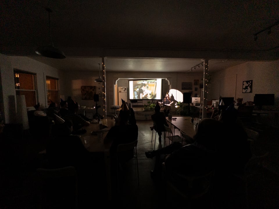 A show and tell for original, amateur, creative works in progress. Each presenter has 10 minutes to spend however they choose (any mix of presenting, Q&A, workshopping, getting feedback).
