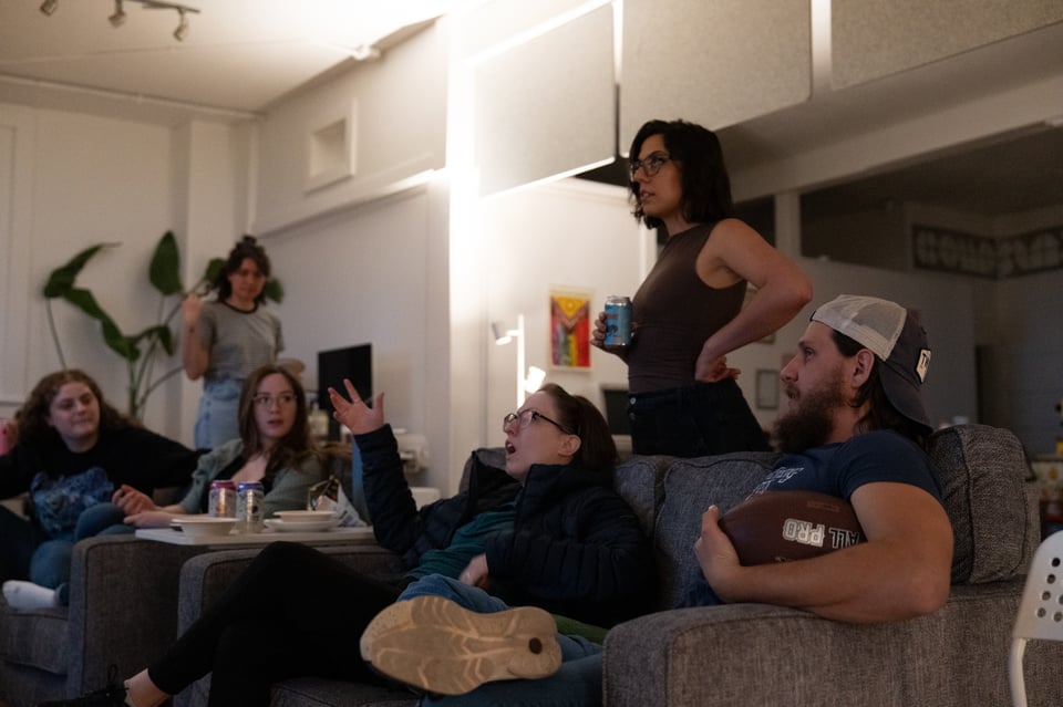 And do you remember the concert itself? How much we cheered, and some of us sang, and some of us danced, and some of us teared up? How after it finished we just kept watching more and more halftime shows, to see how they compared? While Alex in the background kept watching the game on this laptop? While Madeleine kept dancing along? How after a while we confirmed that no other halftime was nearly as interesting to us, nor nearly as good, and so we watched the Bad Bunny show again? How we set Michelle up with a mic, and she paused and provided commentary throughout? That we decided that live, super fan commentary from our friends was the most fun way to watch anything at all?