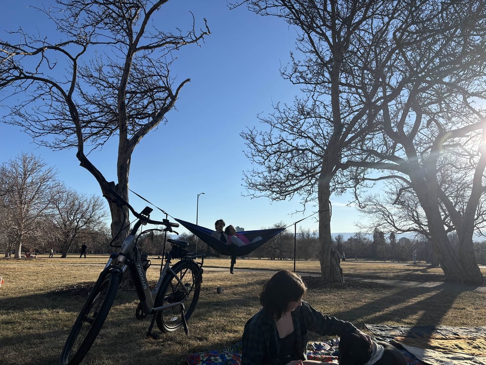And do you remember the day of the Cuppa TREAT YOURSELF Valentine’s Day Clothing Swap? How the room was again a blur of people, trying on each other’s clothes? While Beth slung coffee and tea, and some of us just hung around and talked, and looked over photos of you? How a group of us ended up at bartaco? How we rolled the dice and asked Sarah if she’d ever want to hang out with us? That we ended up at Cheesman, and danced at the pavilion, and met Madi’s dog? That we then sat on blankets in the sunshine, and too few of us swung between trees? How the people of the hammock did not prevail?