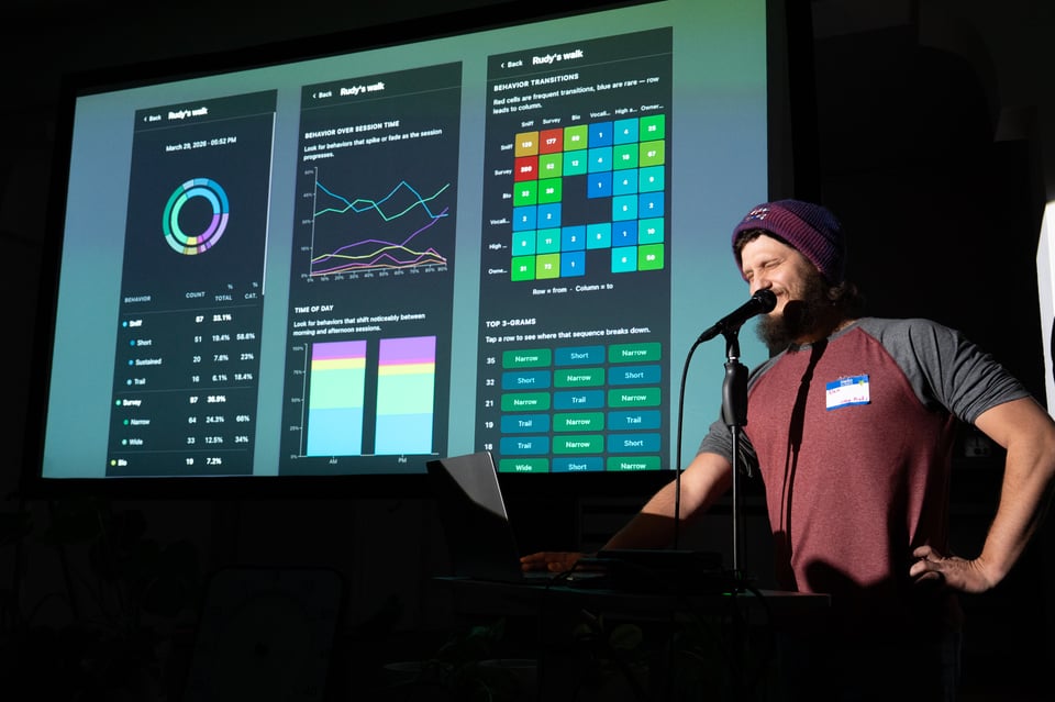 We have a time clock. Partially because, hey, we’re a Company! And mostly because we love having a physical record of (almost) everyone who’s been in the space. People punch in and out when they visit. At the end of each month, we stack up all the cards by visit count in the Fibonacci sequence. Here’s the data for March 2026: