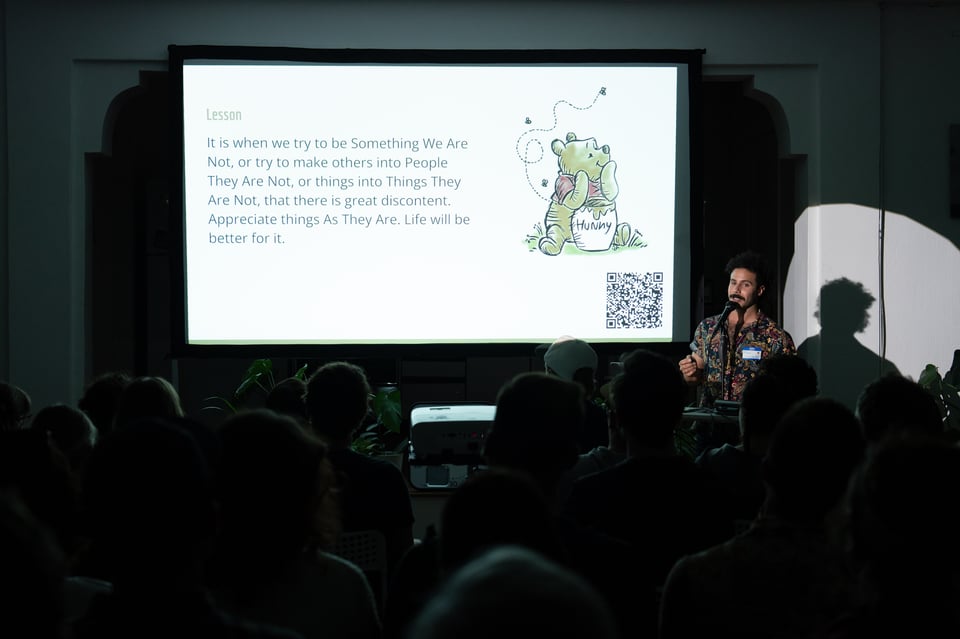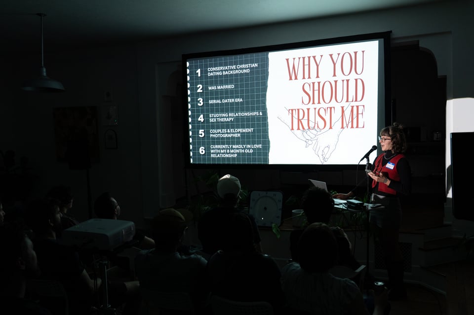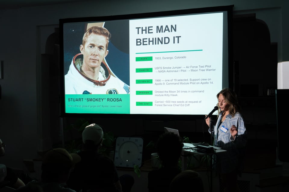 - At PowerPoint Party No. 37: Dan changed our perspective on symbols, Becky seeded a curiosity about moon trees in our minds, McKenna told us about many different aspects of film, Mark explored the wisdom of a fluffy mind, MiCaela gave us dating advice, Michelle took us to a very strange restaurant, Lauren corrected a grievous oversight, Harrison taught us a good deal of insider baseball, Gabby exegeted the Bad Bunny halftime show, Marissa tried to convince us to invest in real estate for imaginary beings, Jacob told us about what he knows about how we know things about space, and Alex reported his findings and reflections on observing the observations of his dog.