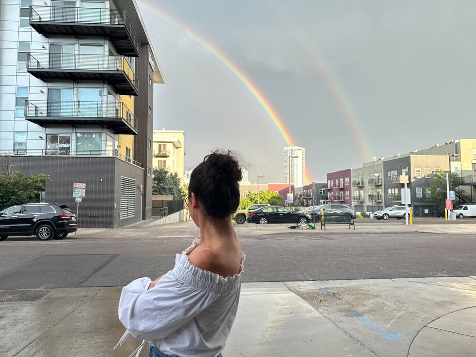 How afterward, when we stepped outside, there was the most vibrant double rainbow Livvy has ever seen? How we cheered and stared and pointed and saw others along 15th street look up?