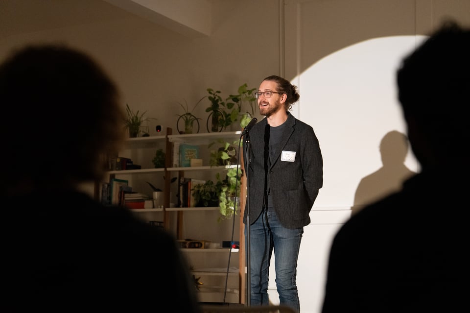 At Glint, Jim talked about a risky and un-regulated alternative to recreational drugs that he’s still trying to track down, Ronak shared about taking an interview during a trip, Brian thought the theme was “Hikes”, Kayla reminisced about a strange encounter with a man who works at altitude, Topaz described a moment of terror on a crumbly mountain trail, Ivan related the disappointment of getting rebooked on a flight, and Allyson recounted a vision that led to one of her tattoos.