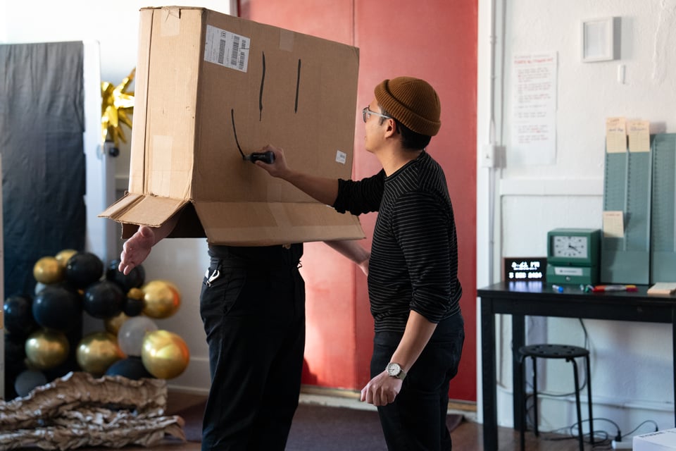 That we got some packages delivered and Dan put a box on his head and Norton drew a face on it? That Michelle made an iMessage sticker of it, and it reminded us of Ace Hardware Norton?