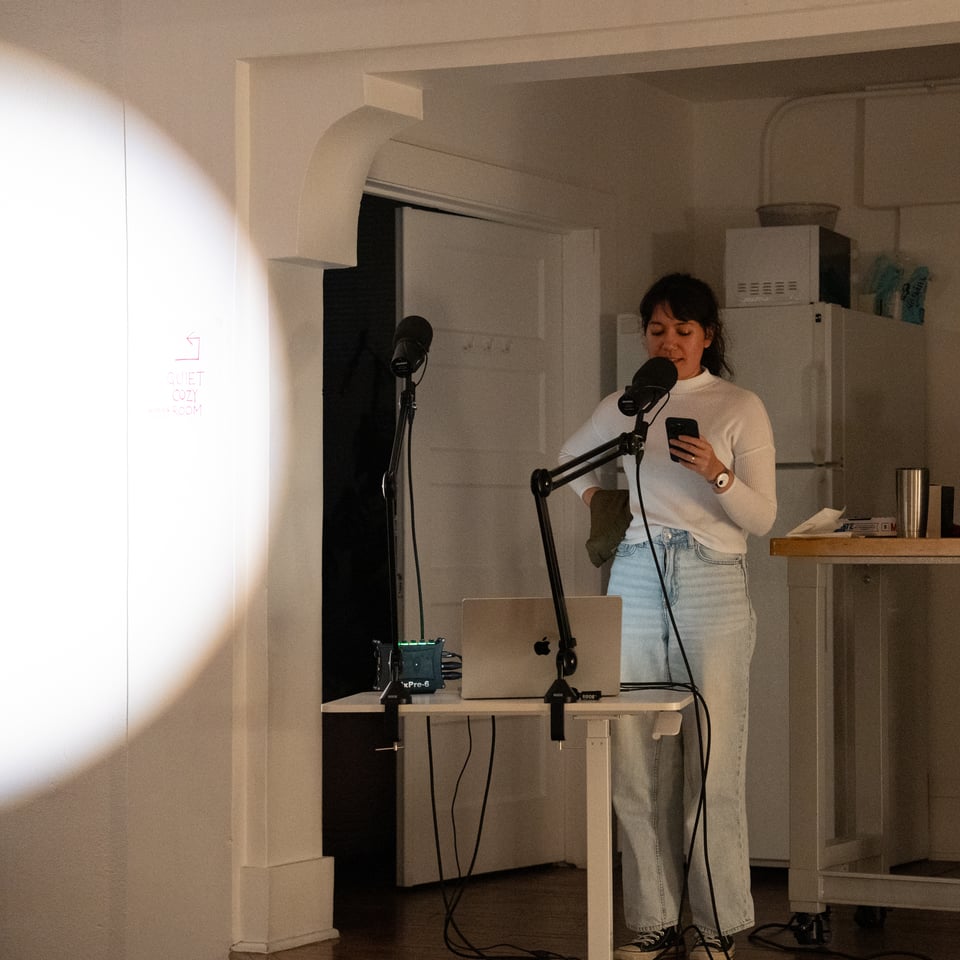 We’ve gotten a few more lamps in the space. Before this, we’ve been bouncing video lights off the ceiling, like a bunch of animals.
