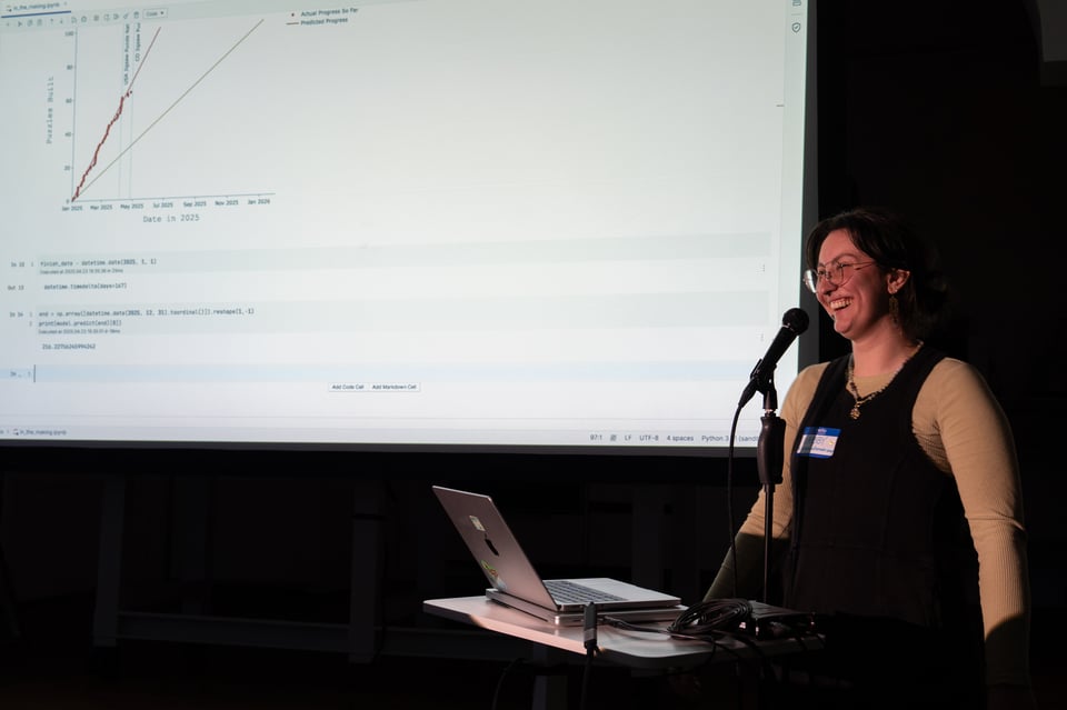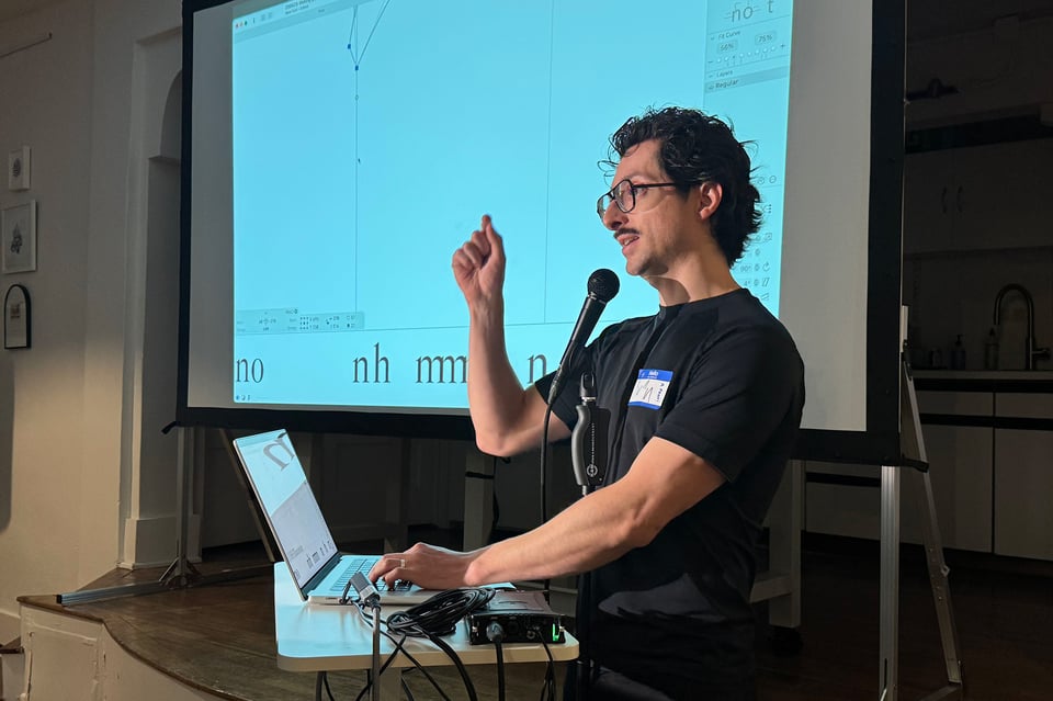 At In The Making: Brien demoed a growing music project, Adam shared the evolution of his photography, Gabby walked us through puzzling data, Ivan worked on a font, Max showed the process of designing a couch, and Lee gave a high level overview of a large scale project.