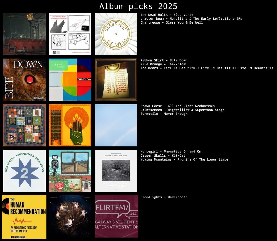 The Human Recommendation radio show 📻 will return in 2026 and my first show of the new year will feature the top Irish albums and EPs. (I'm struggling to whittle that list down to fit into a hour long show!)