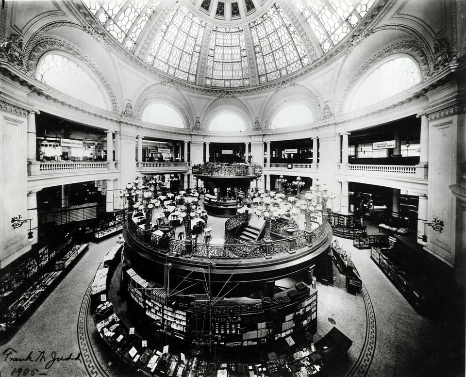 Constructed during the department store craze of the late 19th century, the Emporium was a massive building with a fussy neoclassical exterior.