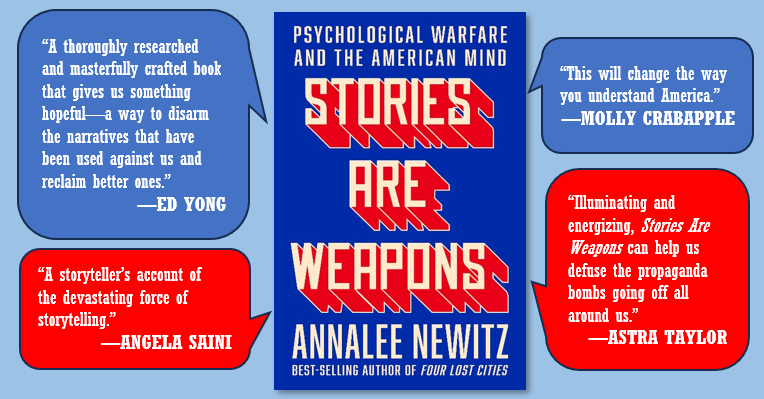 My latest book, Stories Are Weapons, is particularly relevant at the moment. It’s about the history of psyops and culture war in the United States — and how people have always fought back (and won!) against disinformation and propaganda.