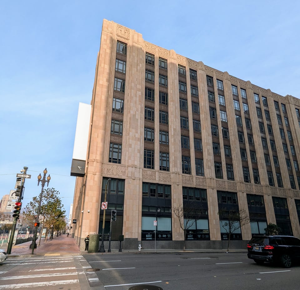 Below you can see one corner of a gorgeous, cream-colored Art Deco building whose fate has become emblematic of San Francisco itself. Note the empty white sign on its left flank, a blank rectangle hovering above a big, square clock. It looks sort of like a giant exclamation point now, but for most of the teens, the sign read “@twitter.” After Elon Musk bought the company, he immediately began defacing the logo. First he ordered the “w” to be pained over so that the sign read “@titter.” Then he paid to have people build a huge glowing X on the roof. The sign was so bright and intrusive that the city forced Musk to remove it.