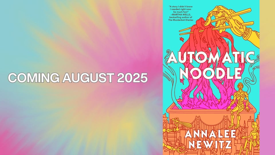 Also, please consider pre-ordering my next book, Automatic Noodle! You can pre-order through Green Apple (link above), your local indie bookstore, or Bookshop.org. Automatic Noodle is about rebuilding San Francisco after a devastating war. It stars a group of robots who take over a ghost kitchen to dish up some of tastiest hand-pulled noodles in the city!