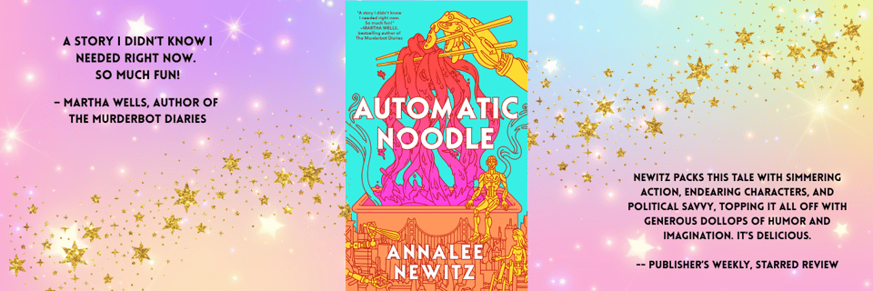 Over the past few weeks, I’ve been writing some articles about how this book came together, and why the heck I chose to imagine robots who make noodles. For New Scientist, I analyzed why negative fantasies about robots and immigrants often take the same forms. For 48 Hills (which also makes an appearance in the book!), I explained how Automatic Noodle is a sharp rejoinder Silicon Valley’s vision of a future where democracy dies and oligarchs rule us with crypto and AI. And for Flaming Hydra, I explored California’s dark history of secessionist movements, which were originally inspired by the Confederacy during the Civil War.