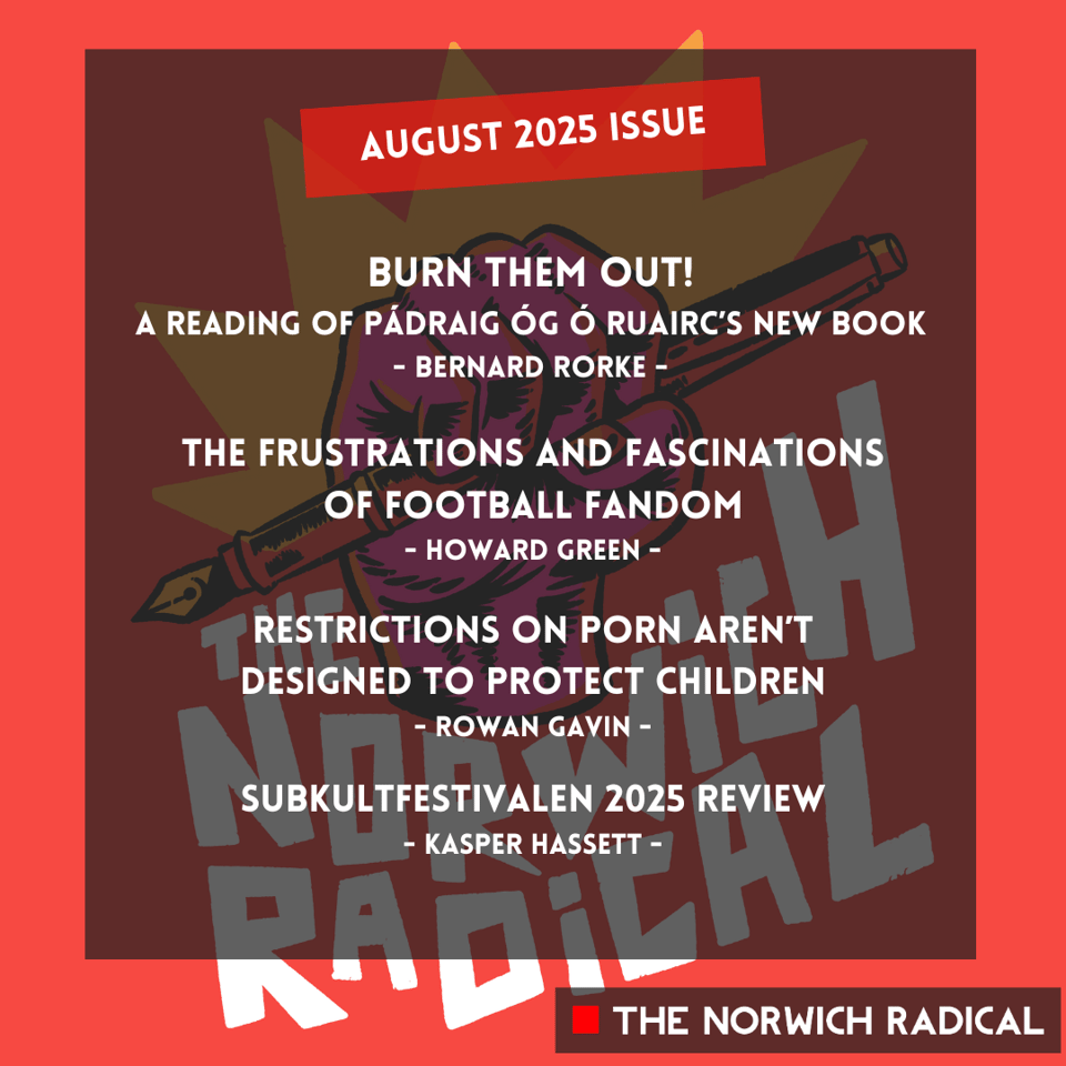 Welcome to the August 2025 Issue of The Norwich Radical! The world continues to heat up in an all-too literal sense, and another scorching Northern hemisphere summer has brought the heat of oppression - and the fire of outrage and protest - to many parts of the world. Many of us feel we are living in dangerous times; many of us are living in dangerous times.