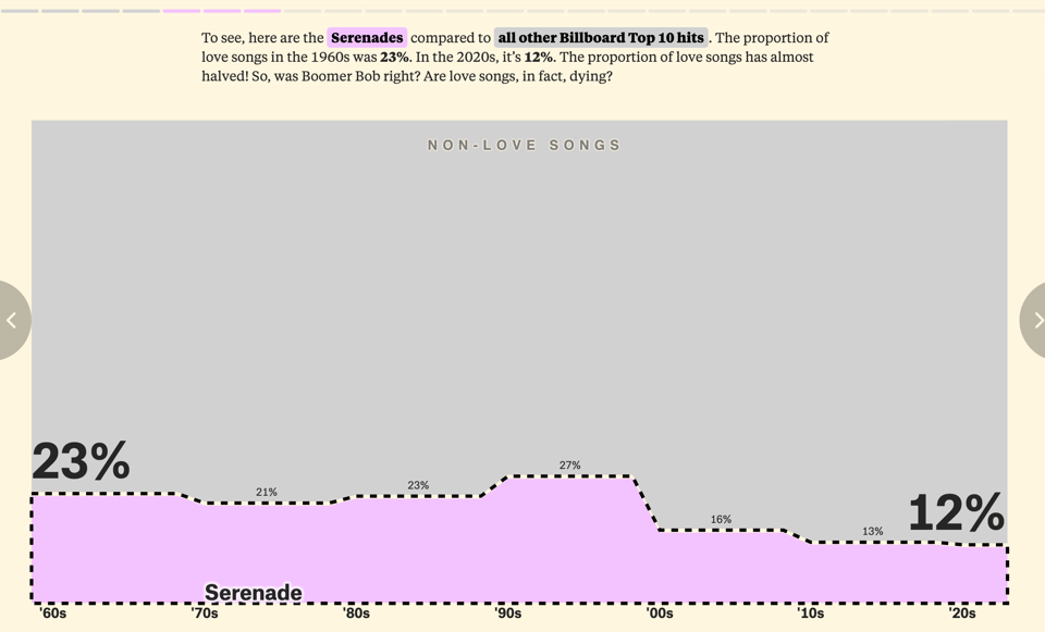 Is the Love Song Dying? In this essay, we look at over 5,000 Billboard hits and quantify how love songs have changed over the years.