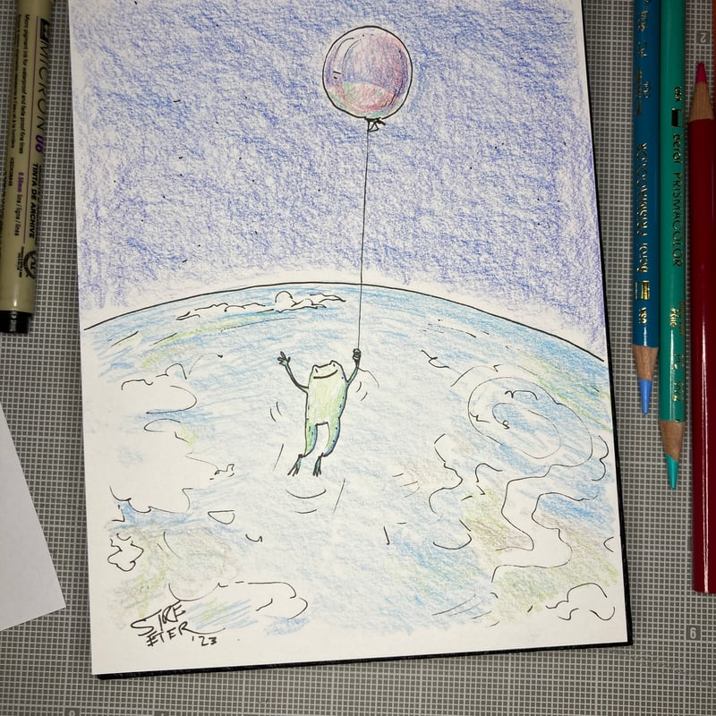 And finally, Prompt 13 is "Rise," in which Magic Space Frog rises above our beautiful Earth. May everything move toward peace in all ways everywhere.