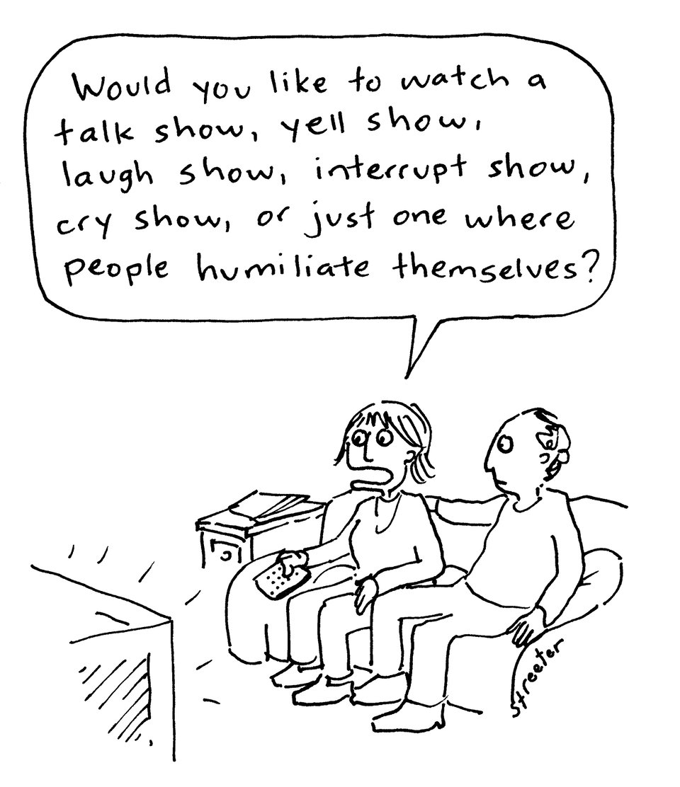 Conversations are who is having them. The person in front of you at the grocery store whose funny little dog (or child) is staring at you from the cart. The total silence between people riding along in a car. A bunch of people shouting over each other in a meeting in a tall shiny high-rise building. The two friends talking about their other friend (hello, middle school).