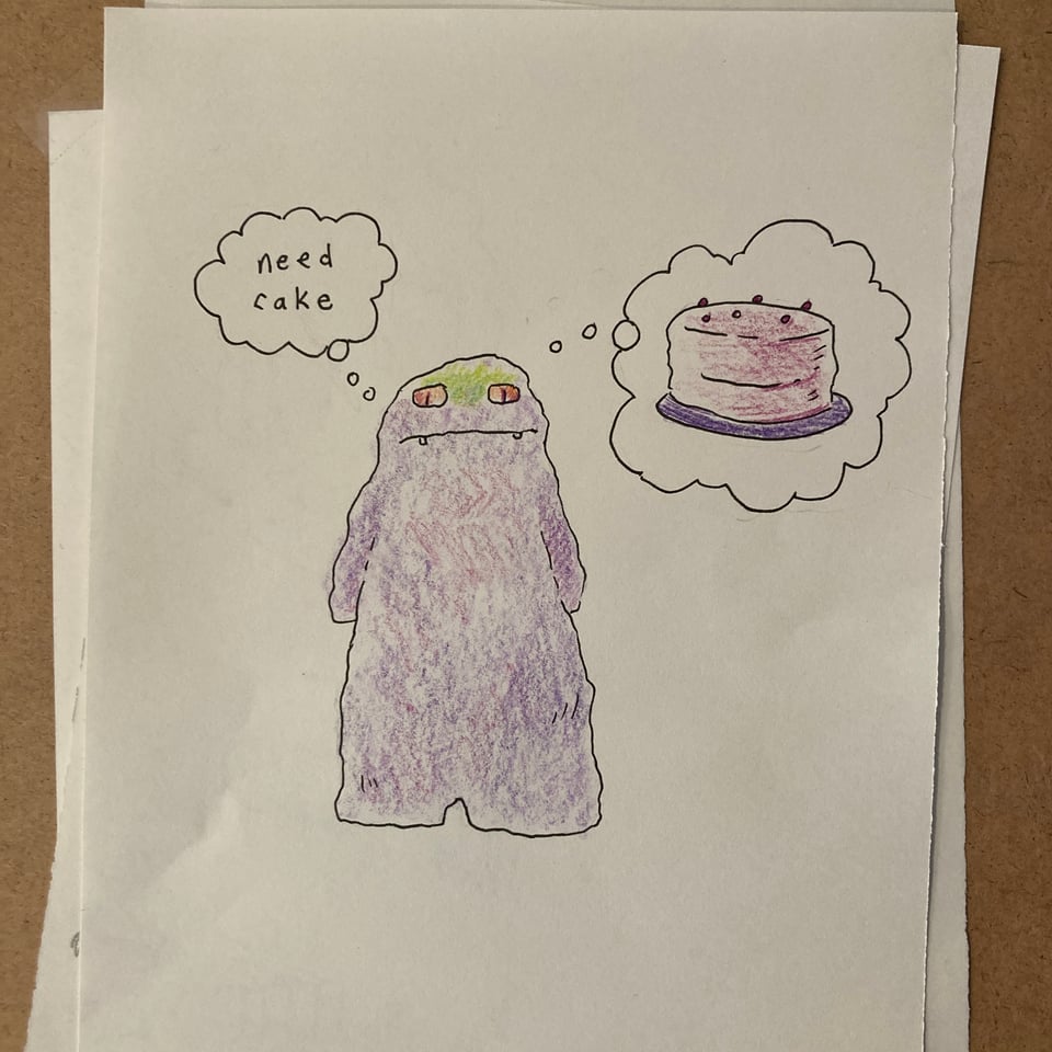 The story also had a Cake Monster (Cake Muncher?) who wanted cake and was purple and had a brain made of jelly which was green.