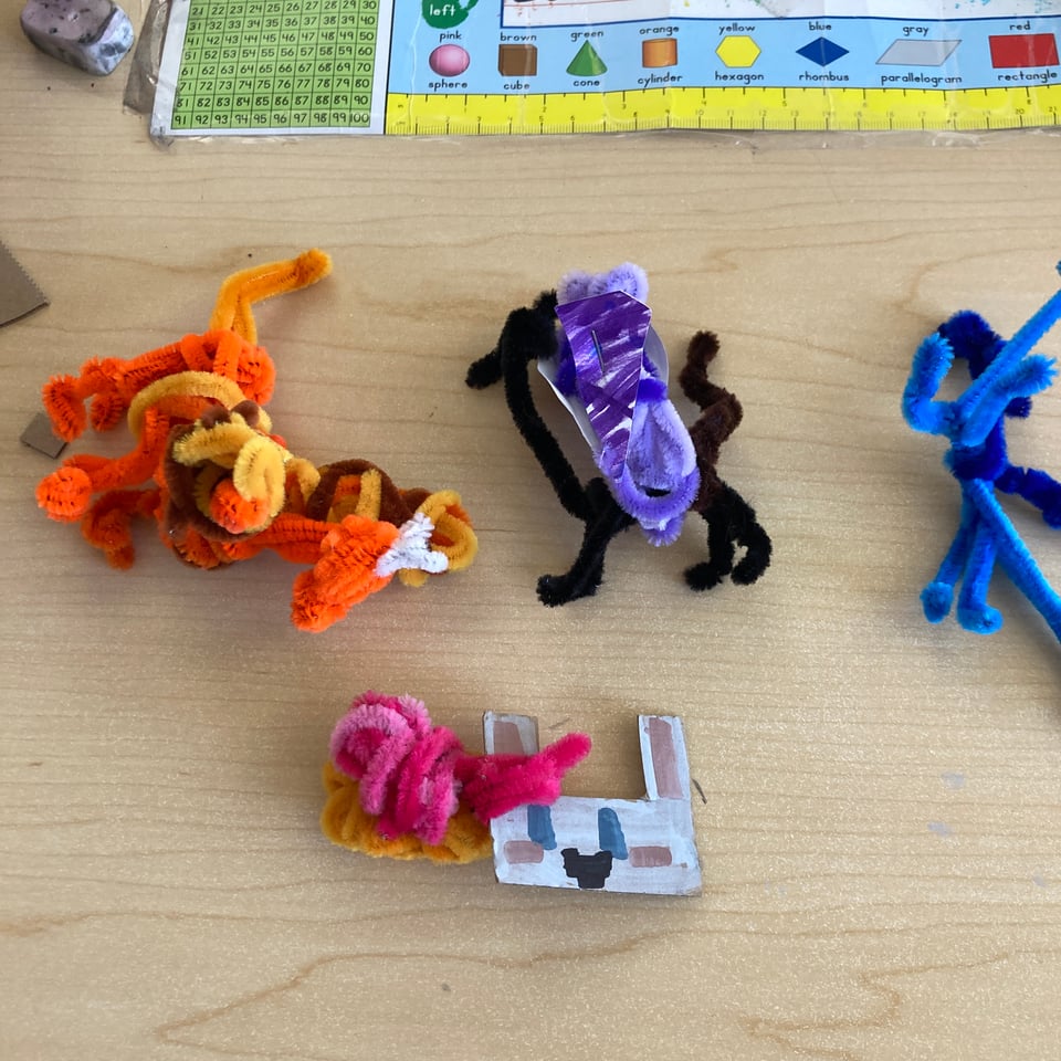 One of the things I love most about making art with kids is that they will have a go, and when in doubt they will just add more, and that they will use any and all materials. These little fellows are just beautiful.
