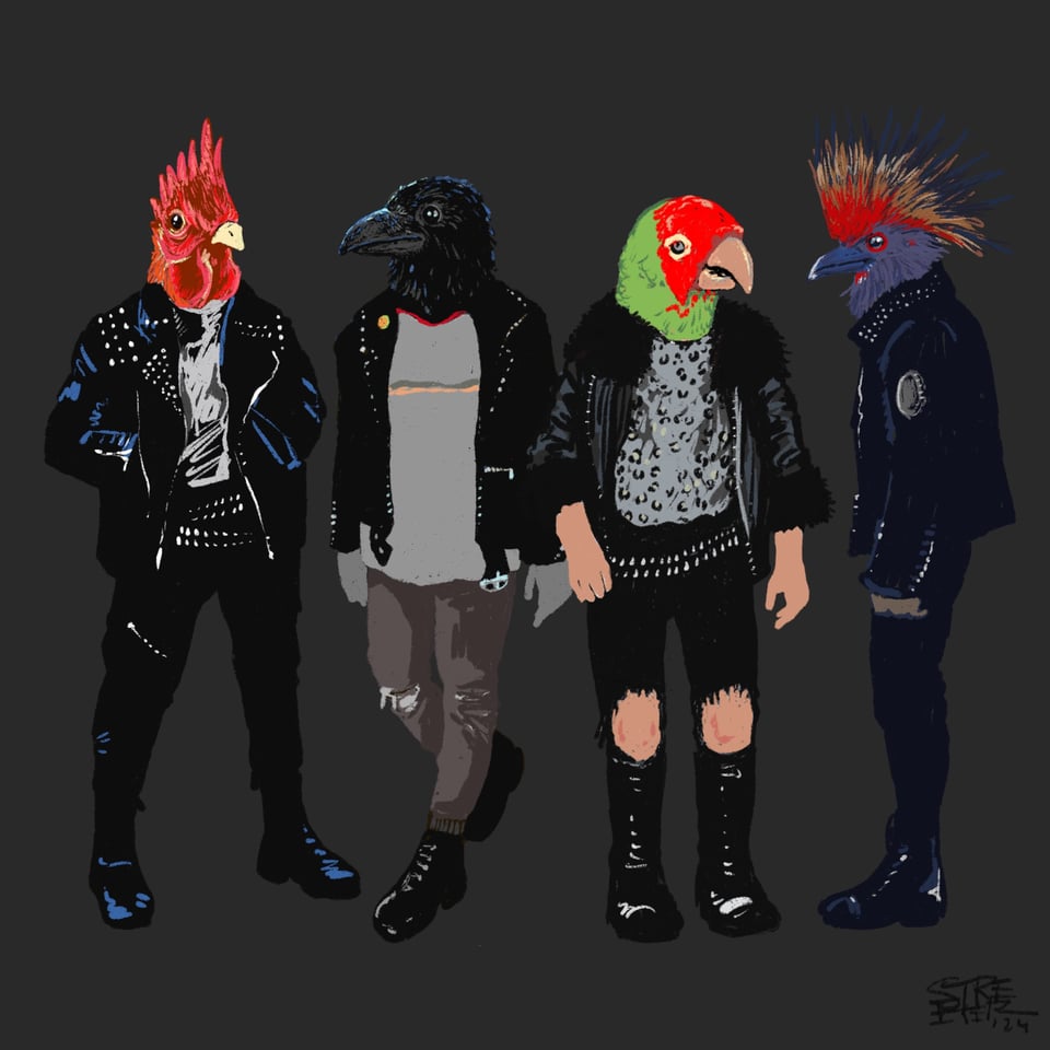 New print this week... a friend (Derek Powazek who with his wife runs Milk Barn Farm, highly recommend Derek's Instagram for adorable goats) called it "A Murder of Punks," and so that’s totally the title. Thanks Derek! Here they are: