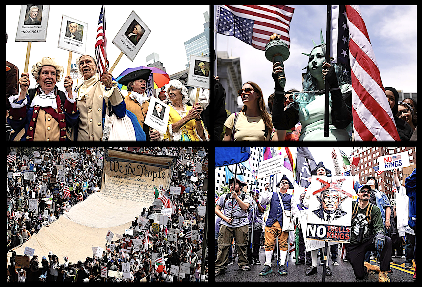 At the same time, millions attended “No Kings” protests across the country, from tiny towns to our biggest metropolises. There, like post-Soviet communists bearing images of Lenin, we returned to the roots of our nation’s mythos: we cast off kings in a revolution, a tax protest that snowballed into independence for the colonies, and protesters celebrated that rebellion with painfully earnest fervor. That we had to reach so far back speaks to the strain on our national identity right now: the pain of dissonance, of the dissolution we see before our eyes.