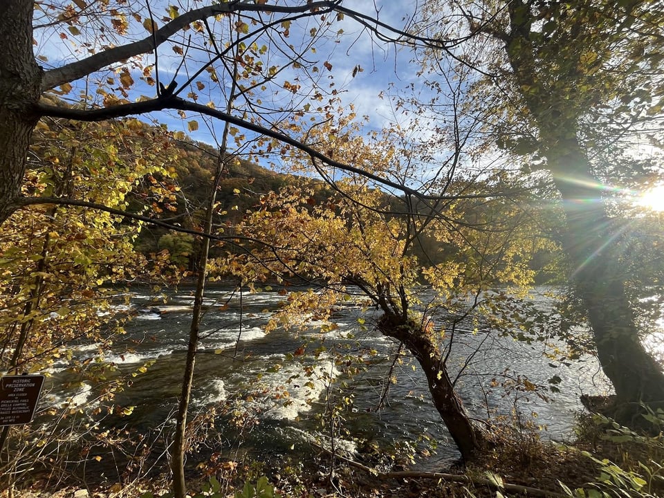The entire East Coast was deep in drought, and the landscape soughing by the car windows felt parched. At Harper’s Ferry, an awesomely beautiful national park at the intersection of the Shenandoah and Potomac rivers, that bright, hot dryness attained a kind of magnificence. The Appalachians swelled soft and high around us in a leafy riot, some boughs still full of unturned green, the hills a patchwork of flaming colors.