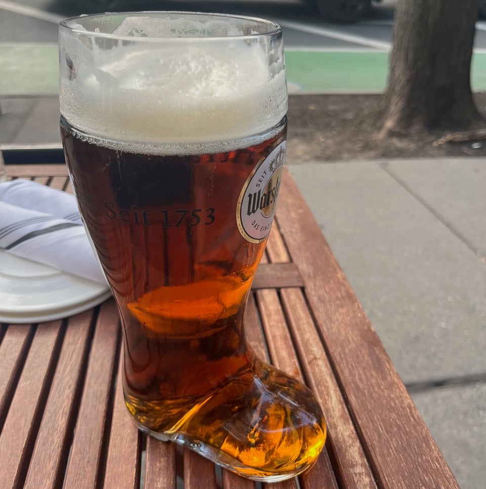 Then, my boyfriend and I had a casual dinner at Heidelberg Restaurant next door, which consisted, on my part, of a bowl of leberknödel soup and an entire liter of Oktoberfest amber beer, served in a boot-shaped chalice.