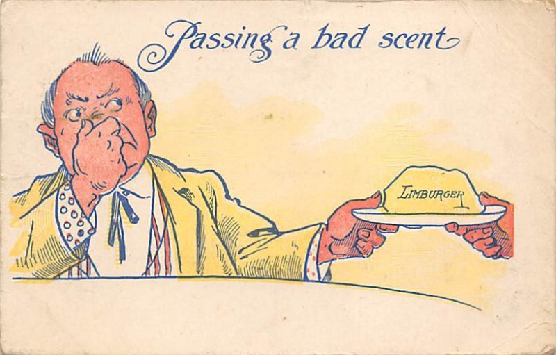 If you want a full and complex and very well-researched history of the cheese in question I strongly encourage you to check out Ben Schwartz’s incredible essay, “The Cheese That Stands Alone.” Among other things, limburger stood as a symbol of the uneasy acceptance of Irish, German, Central and Eastern European, and Jewish immigrants in the early twentieth century, and colorful immigrant malapropisms were labeled “Limburger English.”