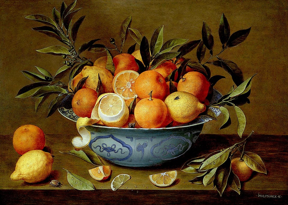 What gets to me are the oranges. Oranges have been part of European culture for a very long time, but for the vast majority of human history obtaining one while living in cold climes was something of a rarity (at least for those outside royal courts, whose jams, jellies and confitures were part of the general array of displayed wealth). Hence the Victorian-era tradition of putting an orange in a Christmas stocking—a more affordable imitation of St. Nicholas’ original gift, to poor maidens, of gold. Though it is a winter-ripening fruit—at its best between January and March—such was the orange’s scarcity, its bright rind and savor of Andalusian sun made it a gift of rare indulgence, particularly in the depths of winter.