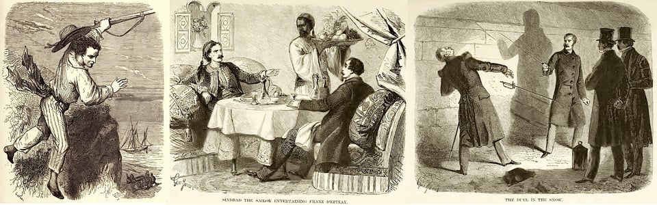 The theme is simple: an innocent man wronged, who obtains a fortune, and returns to exact elaborate revenge on those who betrayed him. (Or her: like I said, there are a lot of variations on the theme.) The latest—a lushly filmed, often unintentionally comic three-hour French extravaganza which came out in June of 2024 and is playing in the US this winter—proves the curious durability of the baroque tragedy of Edmond Dantes, which is coming up on two hundred years of being adored, adapted, translated, devoured. (In addition to last year’s big-screen production, there’s also an English-language limited series starring Sam Claflin and Jeremy Irons that has yet to hit streaming services. Given the sheer volume of adaptations, it’s not surprising that at least one should be a sandwich.)