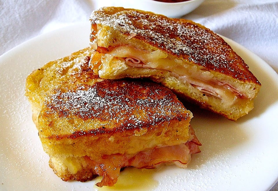 (Nota bene: “Full cream cheese” here means any full-fat cheese rather than cream cheese.) At any rate, subsequent generations have embroidered this recipe with maple syrup, jam, powdered sugar, other meats like turkey and tongue (the tongue version is called the Monte Carlo, for some reason), and probably dispensed with the string. But the basic recipe remains the same.