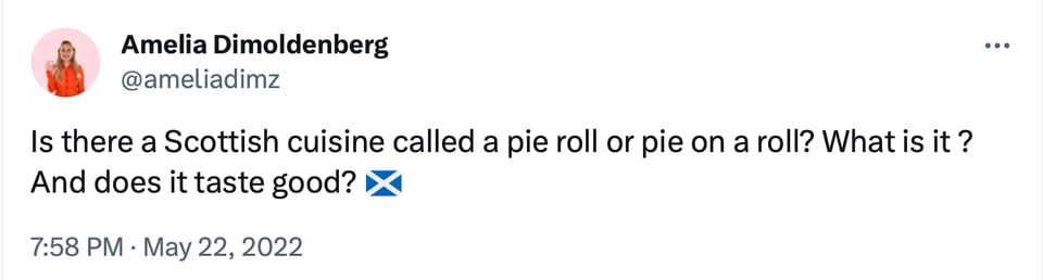 “Its called a ‘roll and pie’ or ‘pie and roll’ depending where in scotland, and its a scotch pie in a (normally buttered) roll...worth a try”
