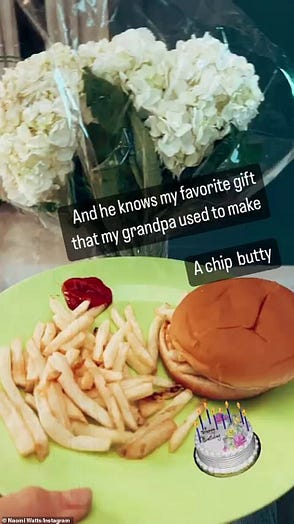 It isn’t only master chefs and working stiffs who appreciate the chip butty. Just this week, the British-born actress Naomi Watts celebrated her birthday with a chip butty made by her son:
