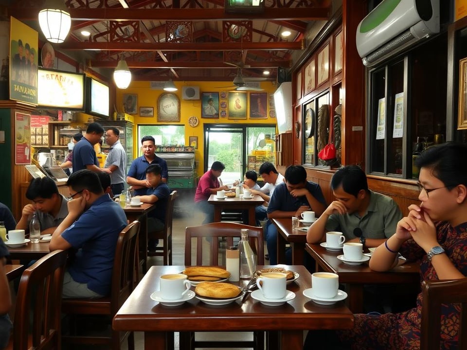 In the late nineteenth and early twentieth centuries there was something of a tin rush in Perak; British mining corporations brought in an influx of Chinese migrant labor, in the Kinta Valley and Larut and the rest of the region. They enabled the extraction and export of tons of tin, and eventually made up nearly one-third of the populace of Perak. These immigrants worked in the mines and everywhere else. They also pioneered a new kind of beverage, Ipoh white coffee, named for Perak’s capital, that serves as a crucial counterpoint to roti bakar. In 1937, two Chinese brothers, Poh Chew and Wong Poh Ting, introduced the coffee to the world at their kopitiam in Ipoh’s Old Town. The coffee beans are slow-roasted in margarine, offering a smooth, blond, highly caffeinated roast, and the drink is usually served with a froth of condensed milk—and roti bakar kaya.
