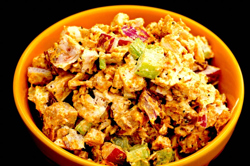 I have since become respectfully and even enthusiastically acquainted with many different varieties of chicken salad, most of which bear little resemblance to the kind harvested from the chicken-soup pot. Once I adjusted to the big square-cut chunks of chicken breast, swimming in mayo and sometimes adorned with weird stuff like grapes, I grew to love it, and my go-to diner order (at least, before 10PM—my strict mayonnaise-salad curfew) is a chicken-salad melt with a side of onion rings and a Diet Coke.