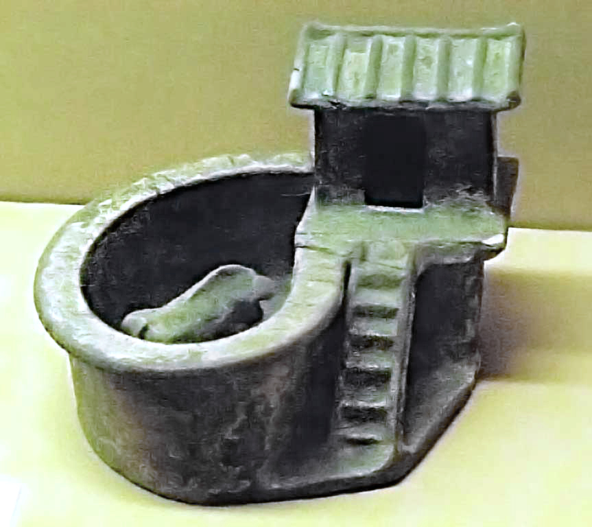 In China the first evidence of pork consumption dates from some nine thousand years ago. “The character 家 (jia), which means both ‘home’ and ‘family’ in Chinese, was made some 3,500 years ago by adding the roof radical to the pig radical; essentially by putting a roof over a pig’s head,” notes China Dialogue. From China, too, stems a unique ornament that indicates the pig’s role for most of its—and humanity’s—history: a ceramic outhouse with a pigsty positioned underneath it. Pigs eat shit, and get fat; they produce shit, which fattens grainfields wonderfully; we eat their fat. The word “larder” comes from “lard” and all the associated products—sausage, cured ham, lardo—that come from the pig.