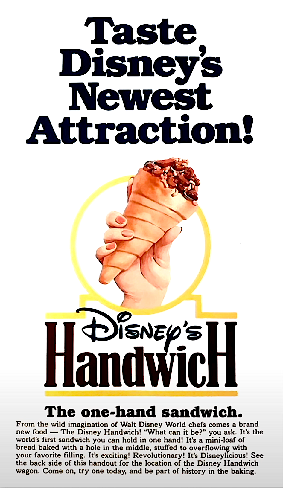 In a recording taken early in the afternoon of May 7, 1984, a veteran Disney Imagineer, noted for her calm touch with members of the public, can be heard asking the sixteen participants to share their impressions of finger foods. “I’m talking something you can hold in the palm of your hand.” This was the fifth focus group of the day, out of a cool Disney dozen. Her voice is clear, even though the hum of the air-conditioning cloaks the words of participants further from the microphone. “Like a sandwich. But just for your hand. A handwich.”