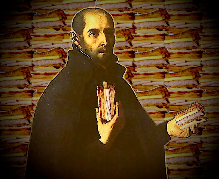 But having answered the what, I’m left with so much why! Why is it named after the Jesuits? Why stuff iced puff pastry with ham and cheese? Sources on the jesuita are frequently befuddled by the subject (one reference on the Wikipedia entry is entitled “El misterioso origen de los jesuitas”), although there are two somewhat dubious theories about the name. The first is that Jesuit robes kind of look like triangles—and some Portuguese forms of this weird petit-four has a blunt rather than pointed top, perhaps a nod to the Jesuits’ flat caps. I don’t reject this idea outright, but it’s kind of suspect; a lot of things look like triangles, and a lot of things are more triangular than robes, including, well, triangles, a perfectly viable name for a pastry. The Jesuits have been mostly well-received in Portugal, with a particular efflorescence in the 1500s and 1600s, and subsequent withering in mid-1700s, when they were expelled from all Portuguese territories. But why this intimation of cannibalism? Who wants to eat a Jesuit? What’s the deal?