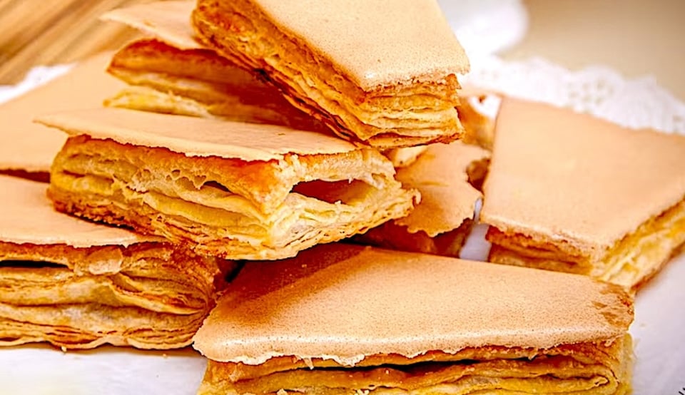 It’s a little triangle of puff pastry topped with meringue. Pastelaria e Confeitaria Moura has been serving these by the thousand for a hundred and forty years, and the hunger for them migrated along with Iberian imperial ambitions. As a sandwich, with the incongruous addition of ham and cheese, it’s become a favorite of Uruguayan and Argentine cuisine (in the former, the sandwich is still called the jesuita; in the latter it’s called a fosforito, or matchstick, rather than its ecclesiastical moniker), and has colonized other countries in South America, bite by sweet-and-salty bite.